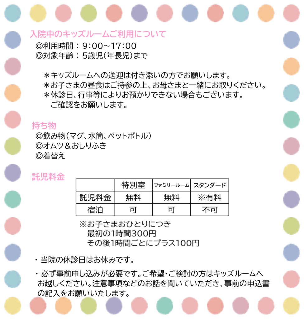 入院中のキッズルーム利用について