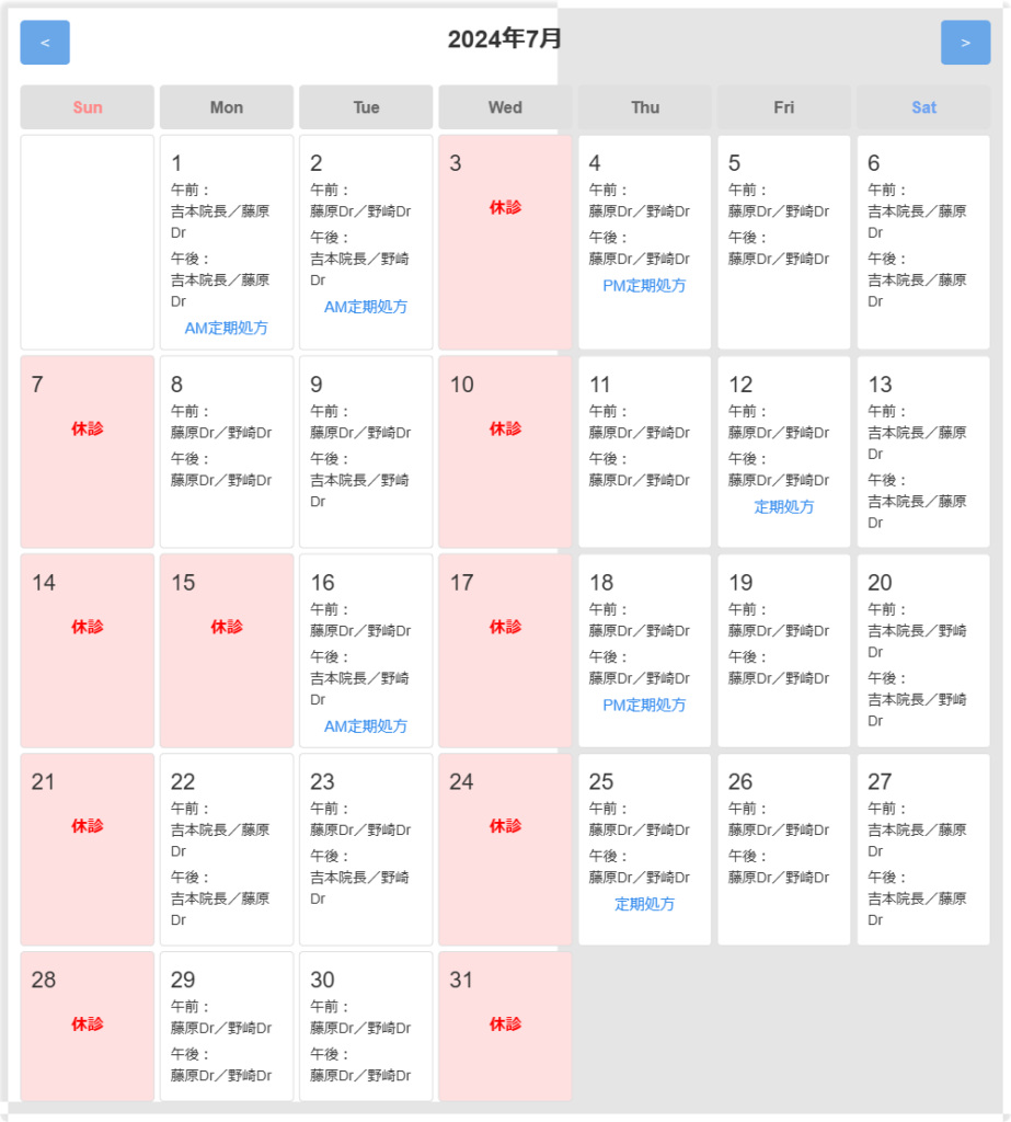 2024年7月 外来医師担当表