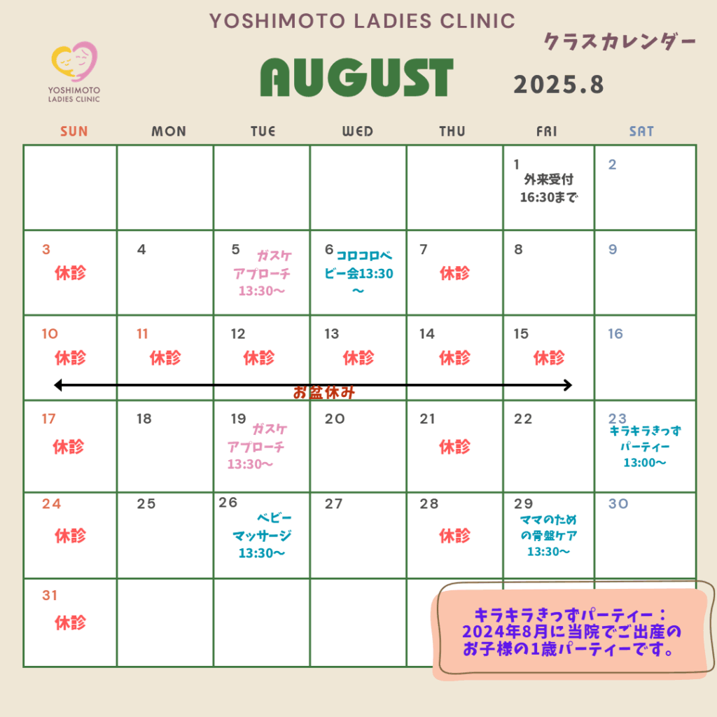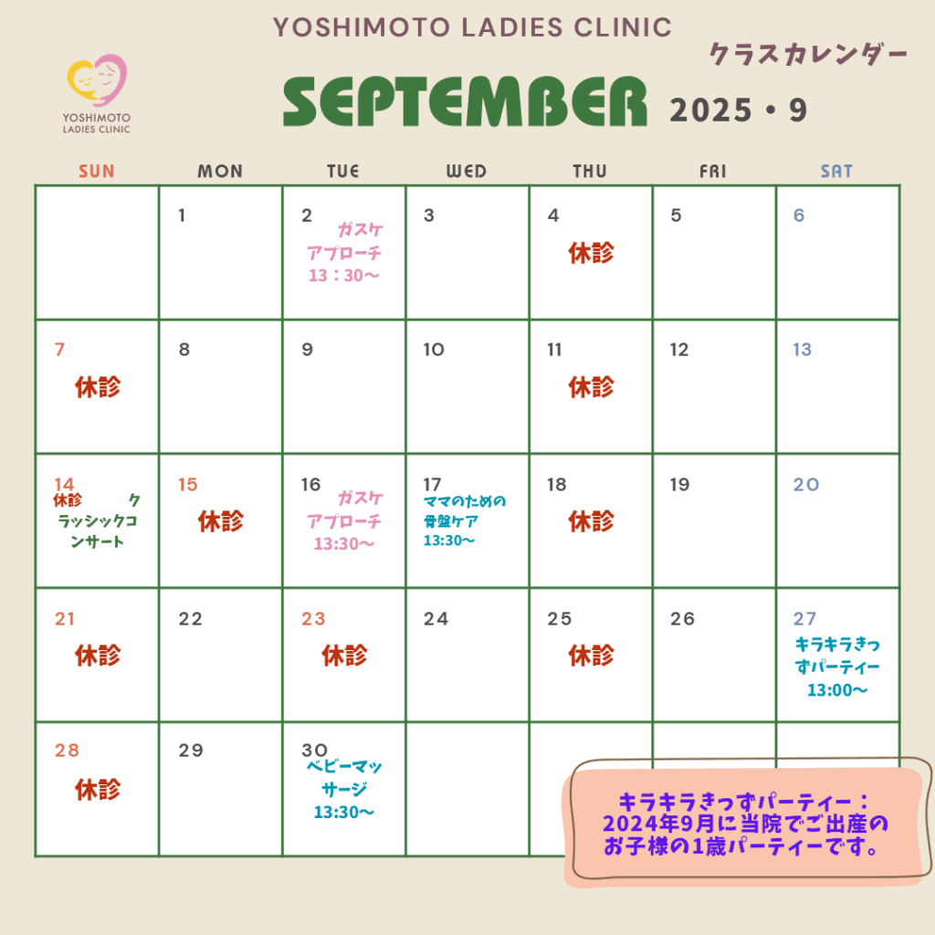 2025年8月9月のイベント・クラスカレンダー