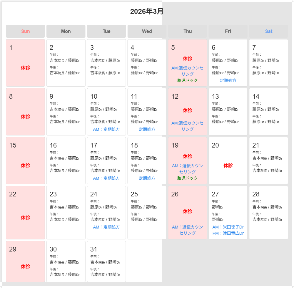 2026年2月 外来医師担当表
