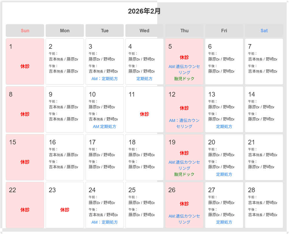 2026年2月 外来医師担当表